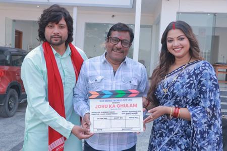 भोजपुरी के महानायक कुणाल सिंह के साथ ‘चला सखी दूल्हा देखी’, ग्लोबल स्टार खेसारी लाल यादव के साथ ‘बोल राधा बोल’ और सुपरस्टार प्रदीप पांडेय चिंटू के साथ ‘हिंदुस्तानी’ की जैसी सुपर डुपर हिट भोजपुरी फिल्म का निर्माण करने वाले फिल्म निर्माता एवं मार्केटिंग हेड विजय यादव नई पहल करते हुए अब फिल्म के निर्देशन में कदम रख चुके हैं। बता दें कि यूथ स्टार प्रेम सिंह और क्यूट एक्ट्रेस रक्षा गुप्ता स्टारर सुर म्यूजिक वर्ल्ड प्राइवेट लिमिटेड प्रस्तुत भोजपुरी फिल्म ‘जोरू का गुलाम’ की शूटिंग उत्तर प्रदेश के जिला भदोही के महाराजगंज में शुरू कर दी गई है। फिल्म निर्माता सुरिंदर यादव द्वारा बनाई जा रही इस फिल्म के कुशल निर्देशन की कमान निर्माता से निर्देशक बने विजय यादव संभाल रहे हैं। उनके कुशल निर्देशन में इस फिल्म की शूटिंग भव्य पैमाने पर जोर-शोर से की जा रही है। फिल्म के लेखक शमशेर सेन, गीतकार एवं संगीतकार सुनील झा, डीओपी सुनील अहिरे, डांस मास्टर कानू मुखर्जी, आर्ट डायरेक्टर अनिल कुमार, पीआरओ रामचन्द्र यादव, ईपी शेखर यादव, प्रोडक्शन कंट्रोलर सुभाष प्रजापति हैं। मुख्य कलाकार प्रेम सिंह, रक्षा गुप्ता, मनोज द्विवेदी, विनोद मिश्रा, कंचन मिश्रा, अनीता रावत, अनीता ओझा, बबलू, प्रियंका शर्मा आदि हैं।